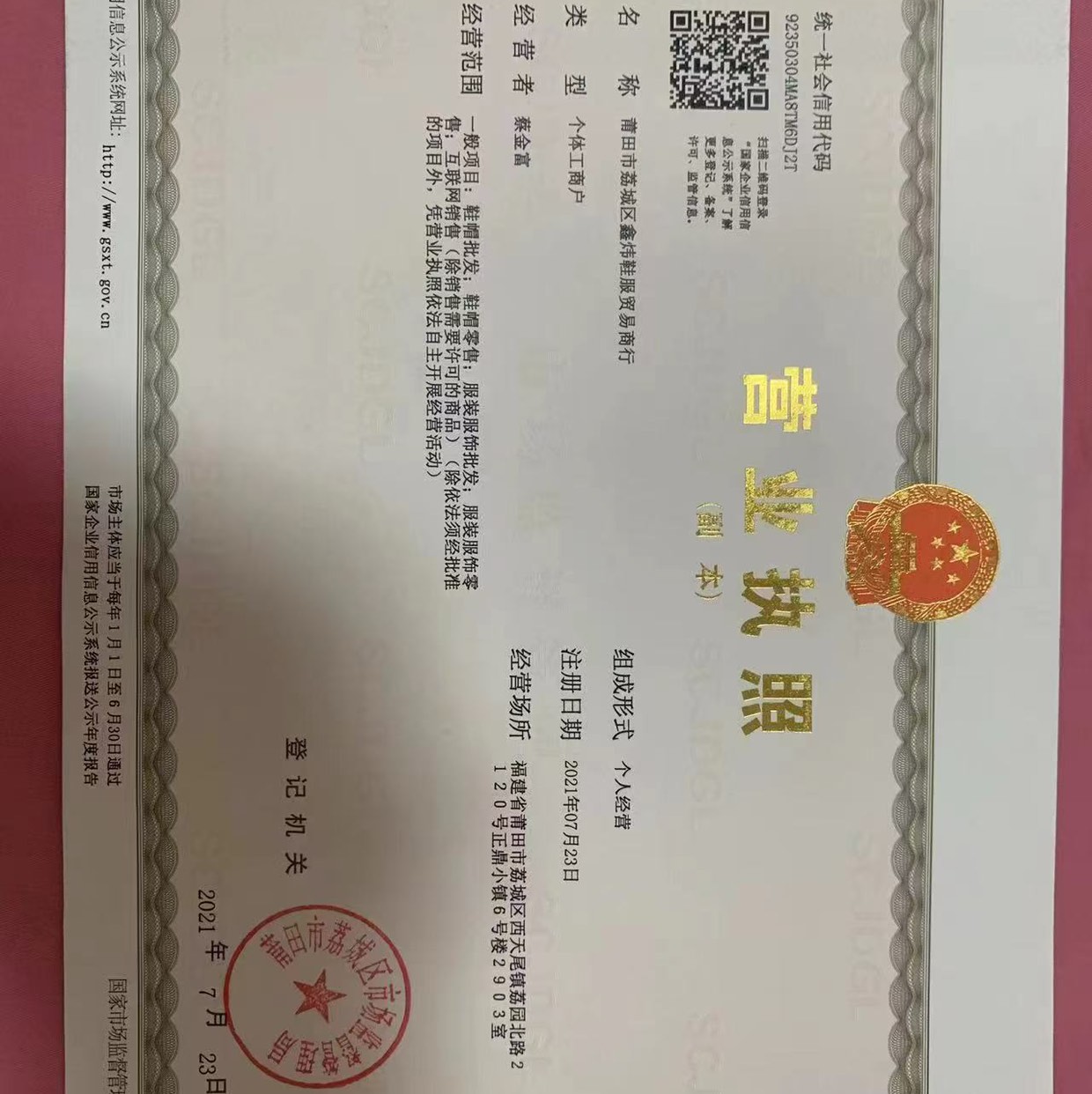 莆田市荔城區(qū)鑫煒鞋服貿(mào)易商行